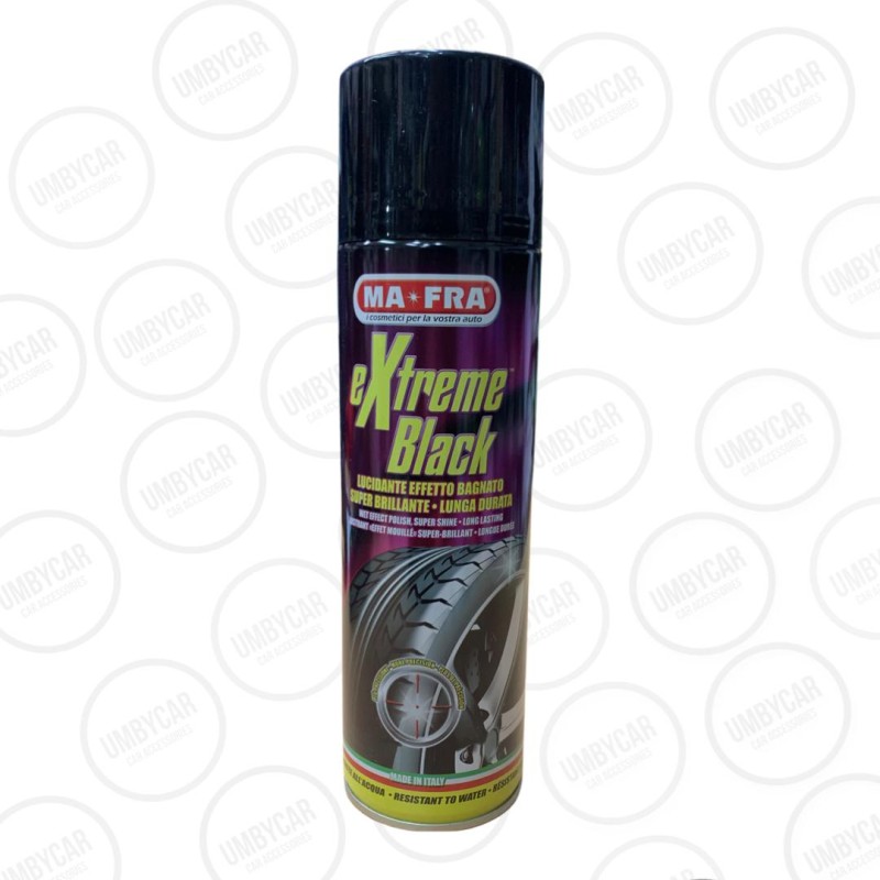 EXTREME BLACK è il nero gomme spray di MA-FRA: una vera cera per gomme, capace di lucidare velocemente i pneumatici auto. 500 ML