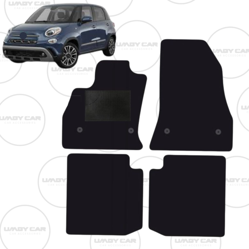 Serie completa di tappeti in moquette made in italy. provvisti sul lato guida, nell'area sotto i pedali, di un elegante battitacco in gomma di rinforzo che protegge i tappeti dall'abrasione costante dei tacchi. Al fine di renderli più stabili e sicuri oltre al fondo ruvido con caratteristiche antislittamento viene applicato su tutto il perimetro inferiore dei tappeti un profilo in velcro brevettato che si aggrappa al pianale in moquette dell'auto.