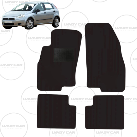 Serie completa di tappeti in moquette made in italy. provvisti sul lato guida, nell'area sotto i pedali, di un elegante battitacco in gomma di rinforzo che protegge i tappeti dall'abrasione costante dei tacchi. Al fine di renderli più stabili e sicuri oltre al fondo ruvido con caratteristiche antislittamento viene applicato su tutto il perimetro inferiore dei tappeti un profilo in velcro brevettato che si aggrappa al pianale in moquette dell'auto.