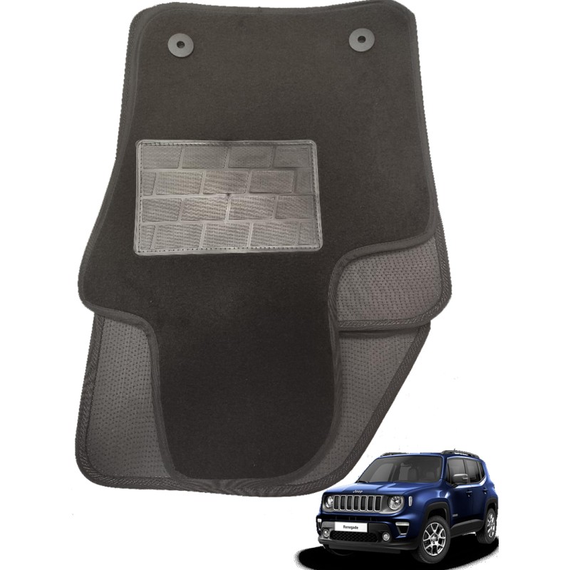 Serie completa di tappeti in moquette made in italy. provvisti sul lato guida, nell'area sotto i pedali, di un elegante battitacco in gomma di rinforzo che protegge i tappeti dall'abrasione costante dei tacchi. Al fine di renderli più stabili e sicuri oltre al fondo ruvido con caratteristiche antislittamento viene applicato su tutto il perimetro inferiore dei tappeti un profilo in velcro brevettato che si aggrappa al pianale in moquette dell'auto.