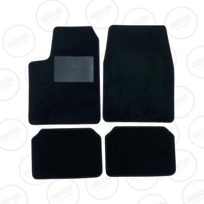 Serie completa di tappeti universali in moquette made in italy. provvisti sul lato guida, nell'area sotto i pedali, di un elegante battitacco di rinforzo che protegge i tappeti dall'abrasione costante dei tacchi. Al fine di renderli più stabili e sicuri oltre al fondo ruvido con caratteristiche antislittamento viene applicato su tutto il perimetro inferiore dei tappeti un profilo in velcro brevettato che si aggrappa al pianale in moquette dell'auto.