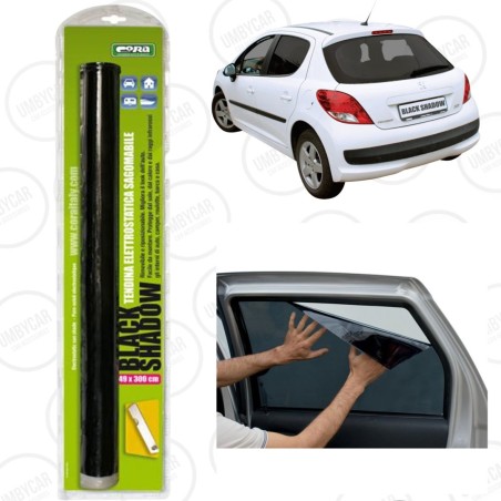 Tendina parasole elettrostatica sagomabile: protegge dal sole, dal calore, dai raggi UV e infrarossi gli interni di auto, camper, roulotte, barca e casa. Rimovibile e riposizionabile. Facile da montare. Dimensioni: 49x300 cm.