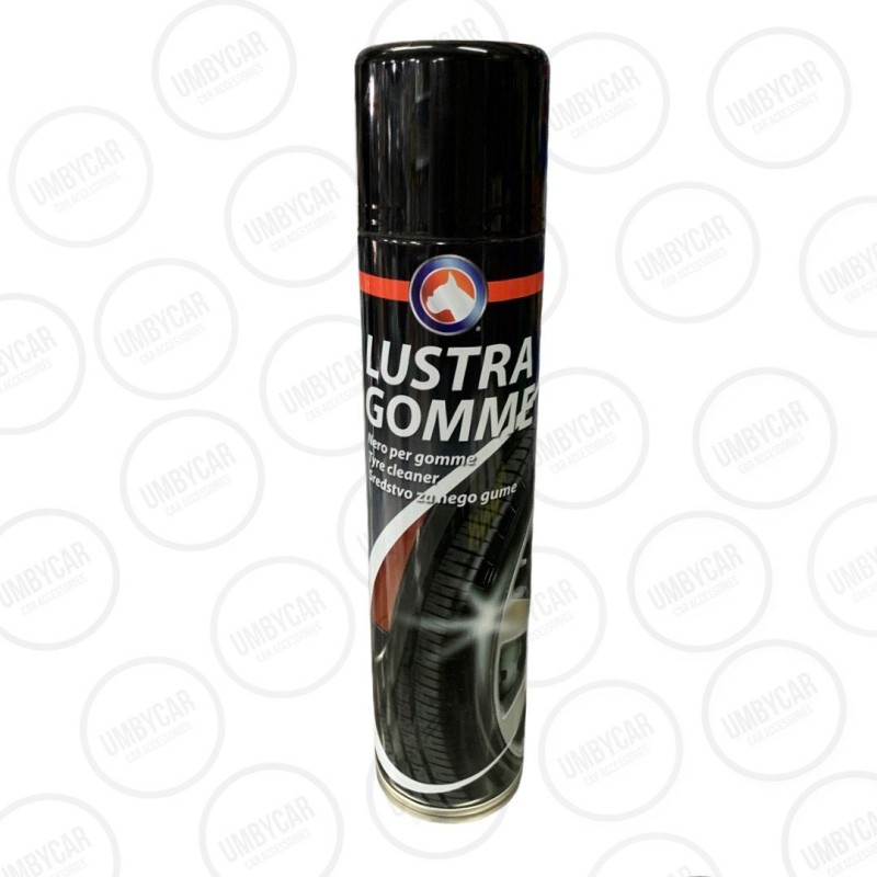 LUSTRAGOMME SPRAY 400 ml E' un prodotto per pulire i pneumatici ed i tappeti di gomma che permette di ottenere il colore originale. I pneumatici così trattati rimangono subito puliti e protetti dagli agenti atmosferici. Previene le screpolature e gli indurimenti del pneumatico. |