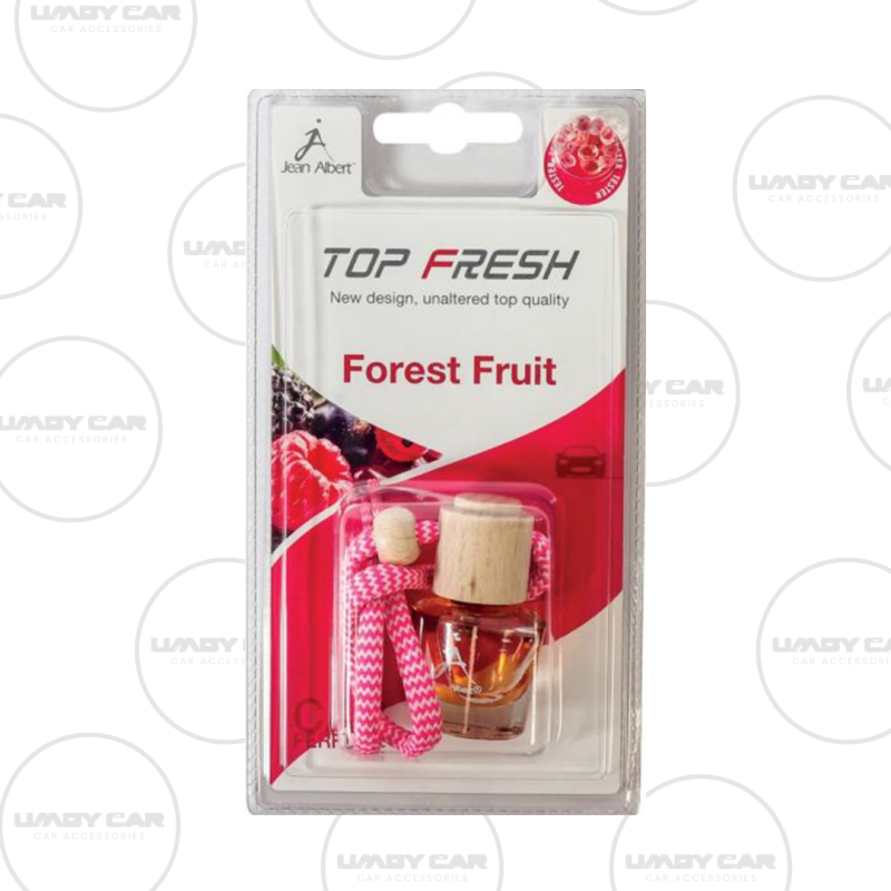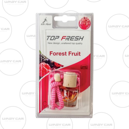 Profumo in bottiglietta da appendere allo specchietto retrovisore. Tappo in legno con sistema di diffusione brevettato. Fragranza Forest Fruit, un tocco d'estate per un'atmosfera rilassante.